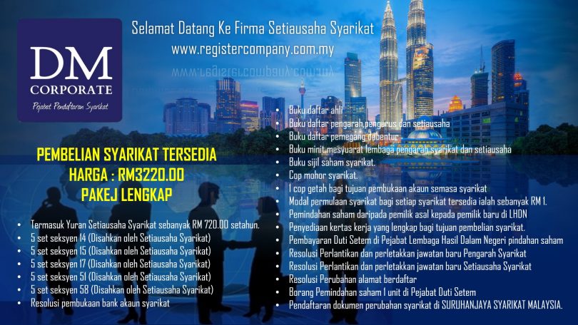 © 2024 Register Company – Website Registered Owner. | All rights reserved – DM Corporate Holding (M) Sdn Bhd Co No : 201401027253 (1103339-U) Company And Business Registration Office In Malaysia | Certified Secretarial & Management Firm | MyCoID System Registered With Companies Commission MALAYSIA | Registered MyCoID with SSM | Approved Licensed Company Secretary in Malaysia | Perkhidmatan Pendaftaran Syarikat Dan Perniagaan Di Malaysia | Syarikat Tersedia Untuk Dijual | Pendaftaran Syarikat Baru di SSM | Firma Penubuhan Dan Pendaftaran Syarikat | Setiausaha Syarikat | Pejabat Pendaftaran Syarikat Dan Perniagaan Di Malaysia | Perkhidmatan Setiausaha Syarikat Berlesen Dari Suruhanjaya Syarikat Berlesen Di Malaysia | Incorporate Company & Company Secretary in Malaysia | Company Secretary Registered With Companies Commission MALAYSIA | Buy Readymade Company in Malaysia